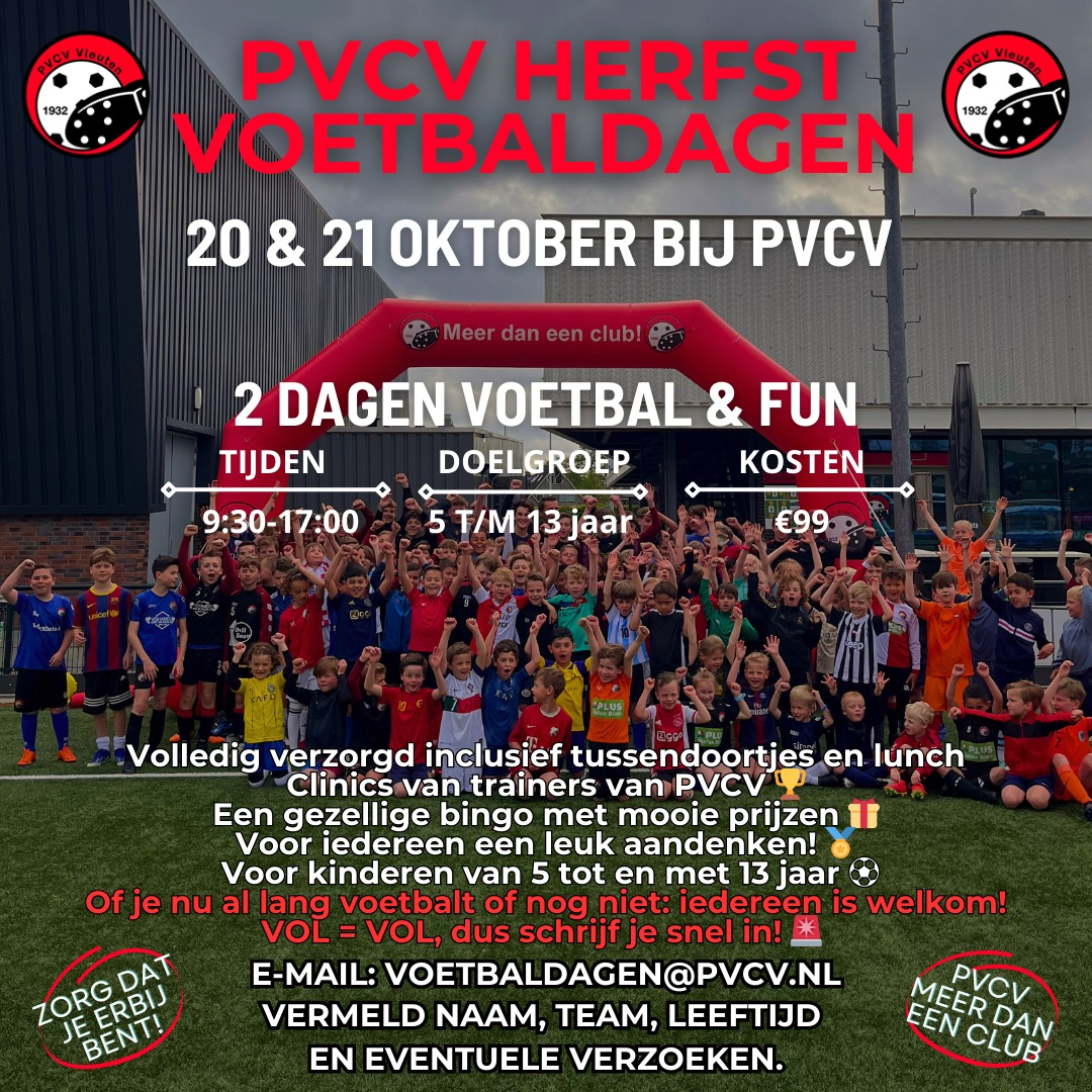 Beide dagen zal er van 9.30 tot 17.00 een uitgebreid en gevarieerd voetbalprogramma zijn bij PVCV.